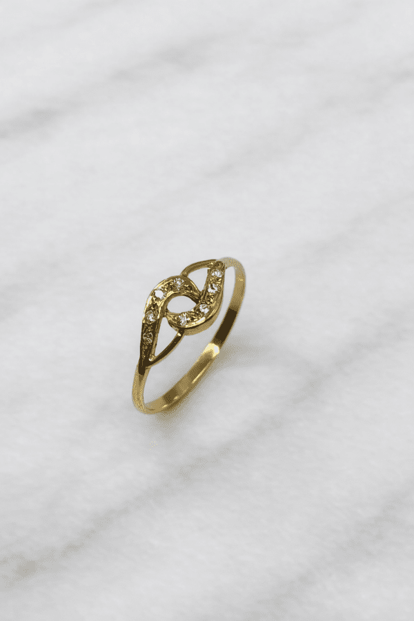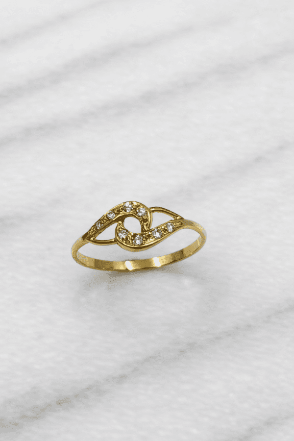 Anillo de oro 18k con circonitas, medida nº 15, ancho 7 mm y peso 1 g; diseño elegante y muy favorecedor, en estado impecable y con un brillo espectacular, ideal para uso diario o para ocasiones especiales. B01587091