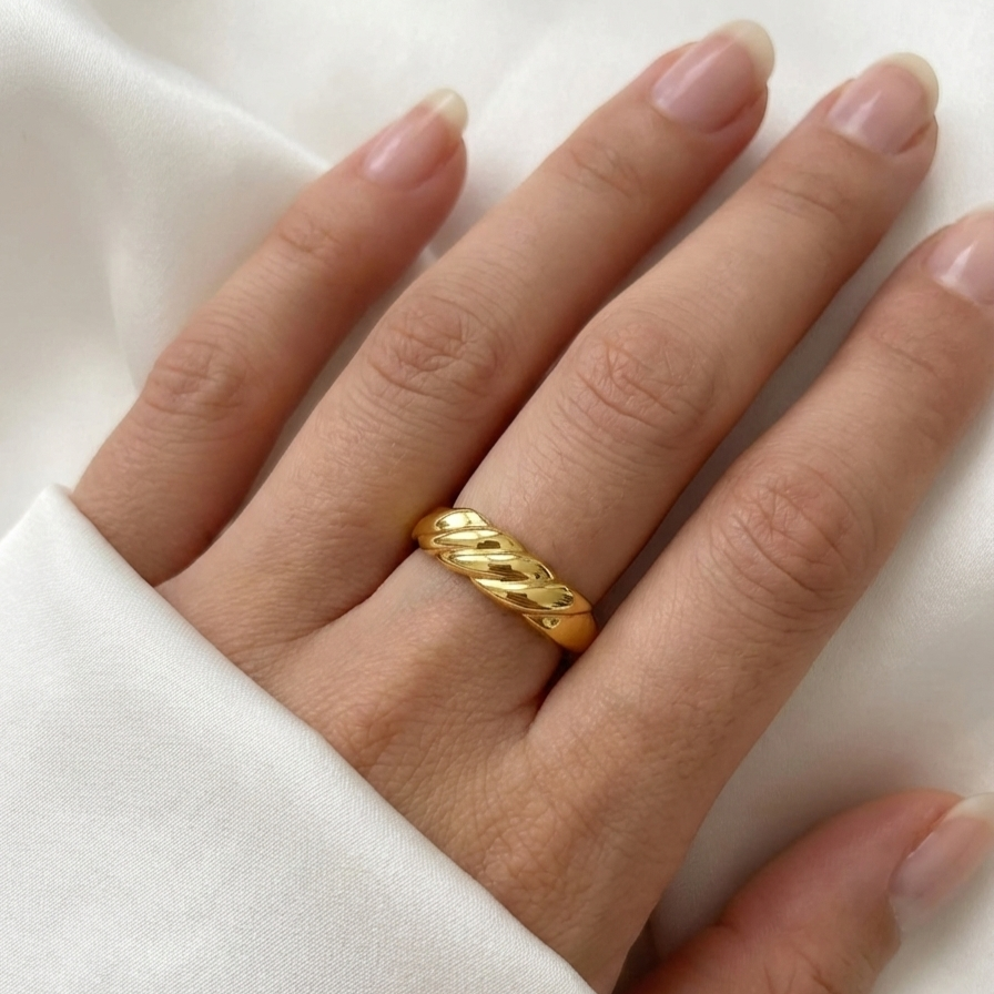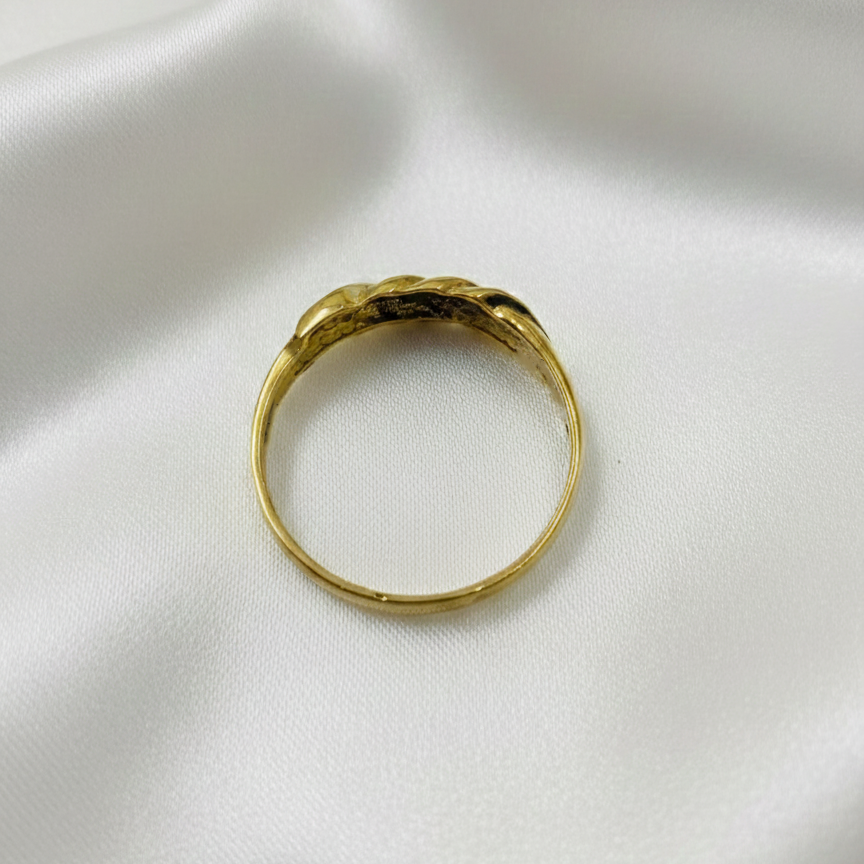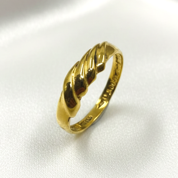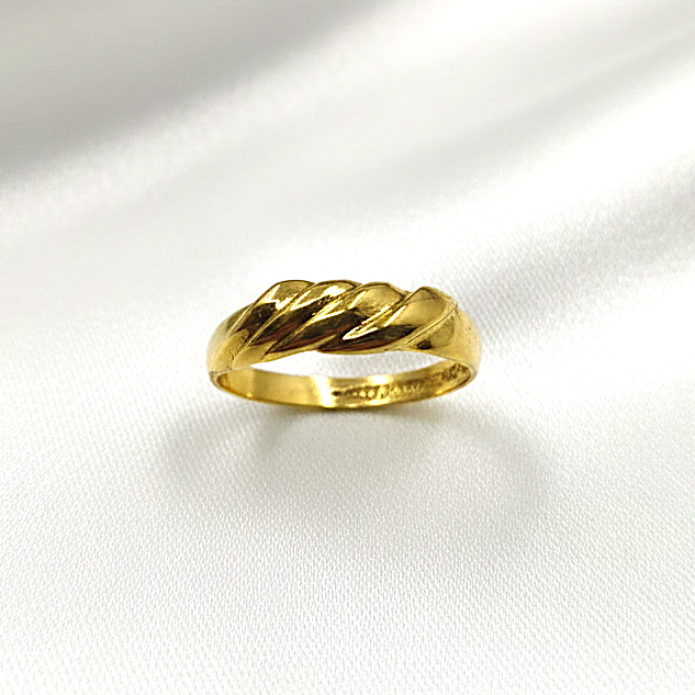Presentamos este elegante anillo de oro amarillo de 18 quilates, destacado por su distintivo diseño gallonado en la parte frontal que le aporta volumen, textura y un brillo excepcional. Con una medida exacta de nº 12 y un ancho de 4.83 mm peso 1.96 gr, es una joya clásica y versátil, ideal para complementar cualquier estilo con un toque de sofisticación. Hemos cuidado la iluminación para mostrar con máxima nitidez los detalles de su impecable orfebrería. b015866610