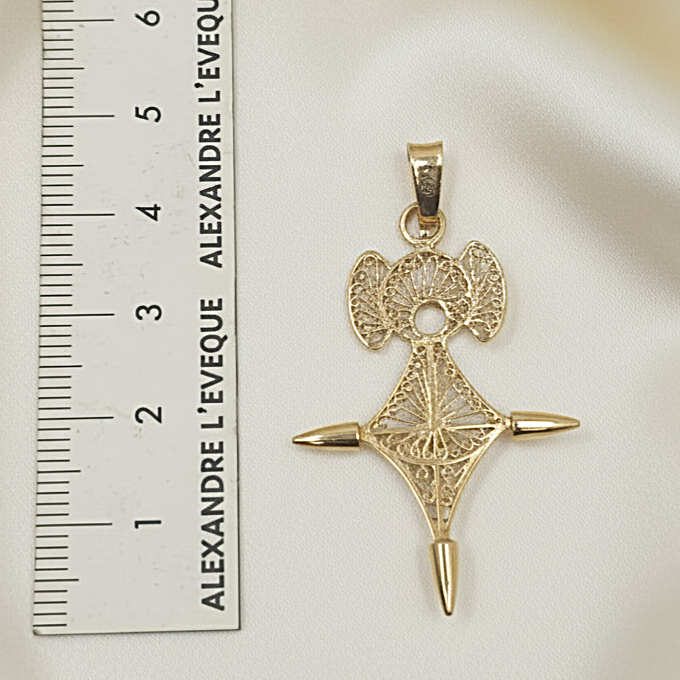 Elegante colgante en oro amarillo de 18k, ideal para quienes buscan una joya única y sofisticada. Con unas medidas de 40.50 mm de alto por 27.60 mm de ancho y un peso de 3.84 gramos, este colgante combina diseño y calidad en una pieza que destaca por su brillo y presencia. Perfecto para regalar o lucir en ocasiones especiales. B01586516
