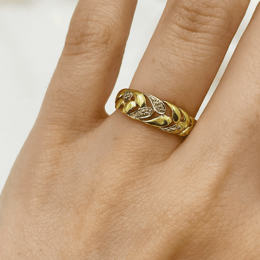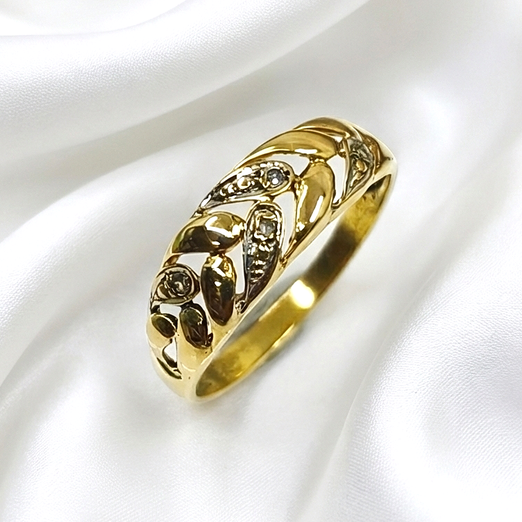 Anillo realizado en oro amarillo de 18 quilates, destacando por su elegante diseño con brillantes r. Este anillo tiene una medida nº 17, un ancho en su parte central de 6.37 mm y un peso total de 1.68 gramos, siendo una pieza delicada pero con gran presencia, ideal para un regalo especial o para lucir a diario. 001587463